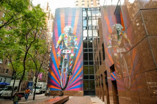 Neste mural Cobra retrata Albert Einstein pintando seu amor por Nova York (quadrado é claro). Detalhe: em inglês, o número 2 tem o mesmo som da palavra “too” que significa também.